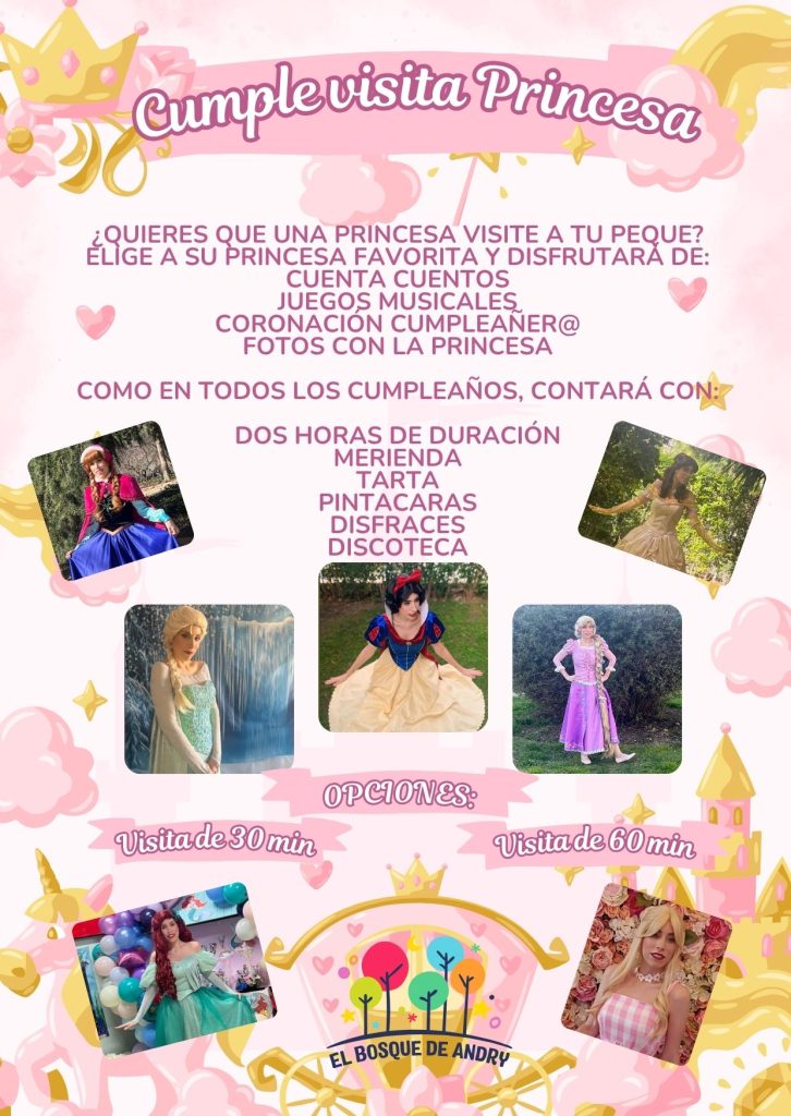 - Juegos, canciones y fotos con la princesa elegida